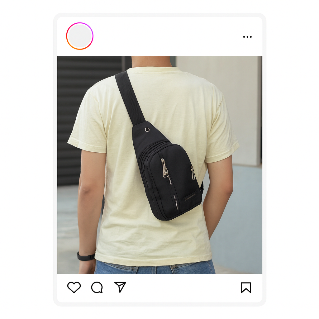 Bandolero cruzado modelo «Super-One», en tela polyester. Incluye 2 compartimentos independientes + 1 bolsillo interno + 1 bolsillo frontal vertical todos con cierre.