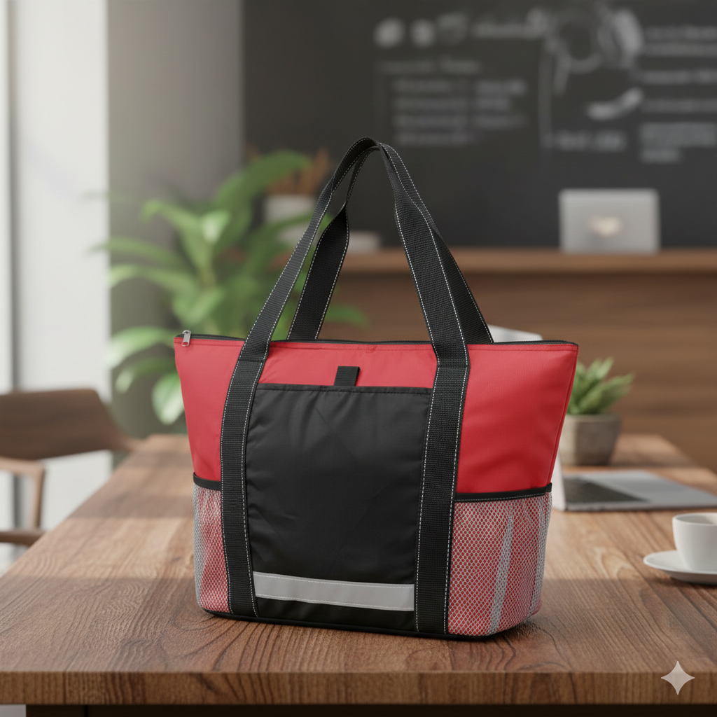 Incluye bolsillo delantero para bordar + bolsillos laterales tela malla.