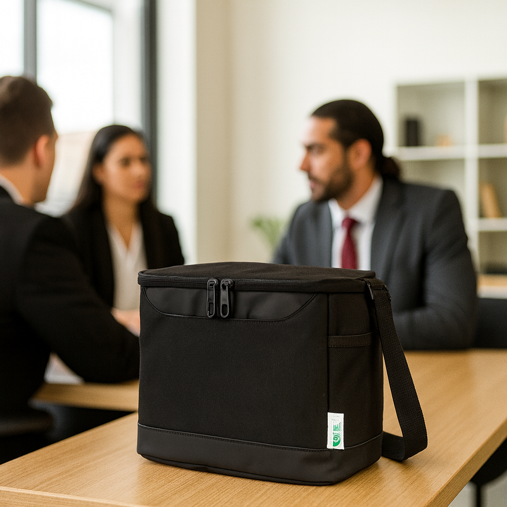 Material: RPET, Poliéster 250D/PVC, PEVA aislante, esponja PE FOAM.