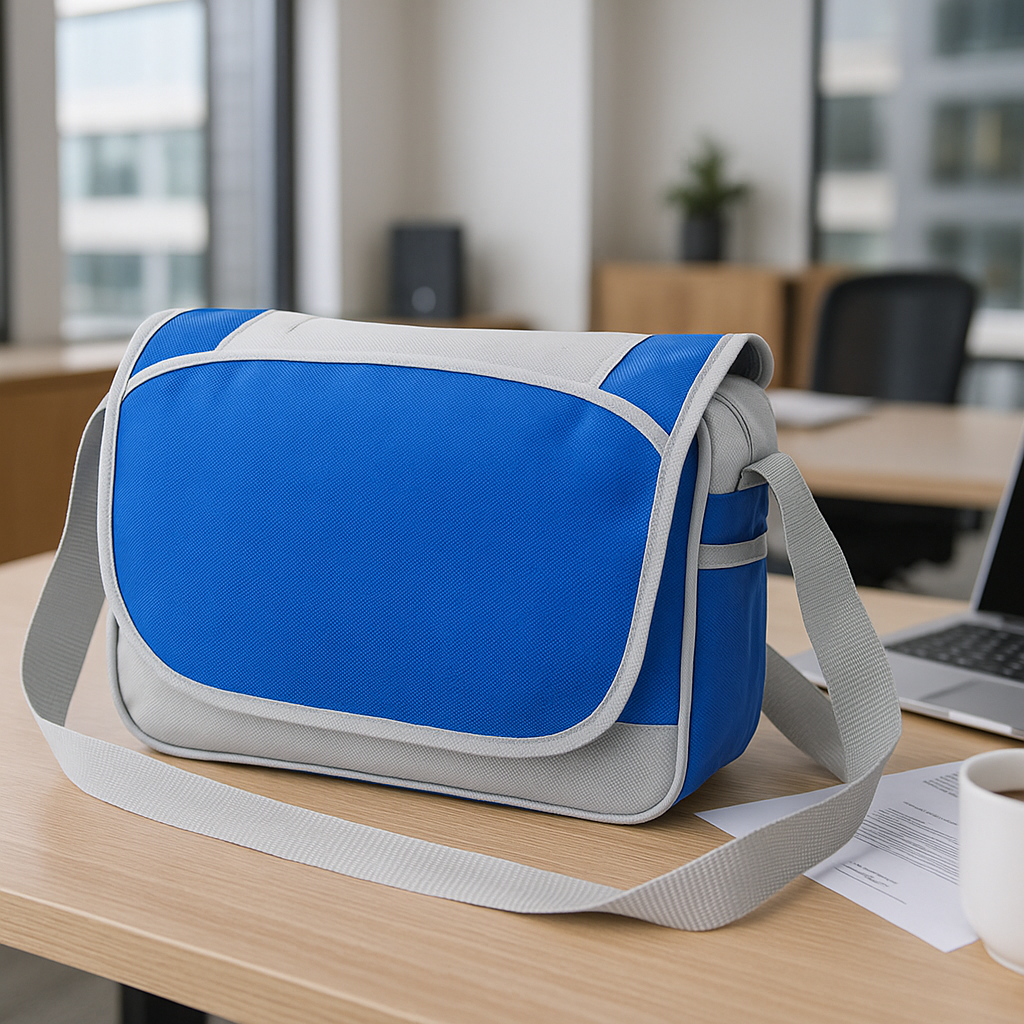 Maletín Porta documentos «Venezia» de tela Raquelada Polyester 600D, con bolsillo delantero interior. Incluye solapa con otro bolsillo con cierre y malla lateral para botella.